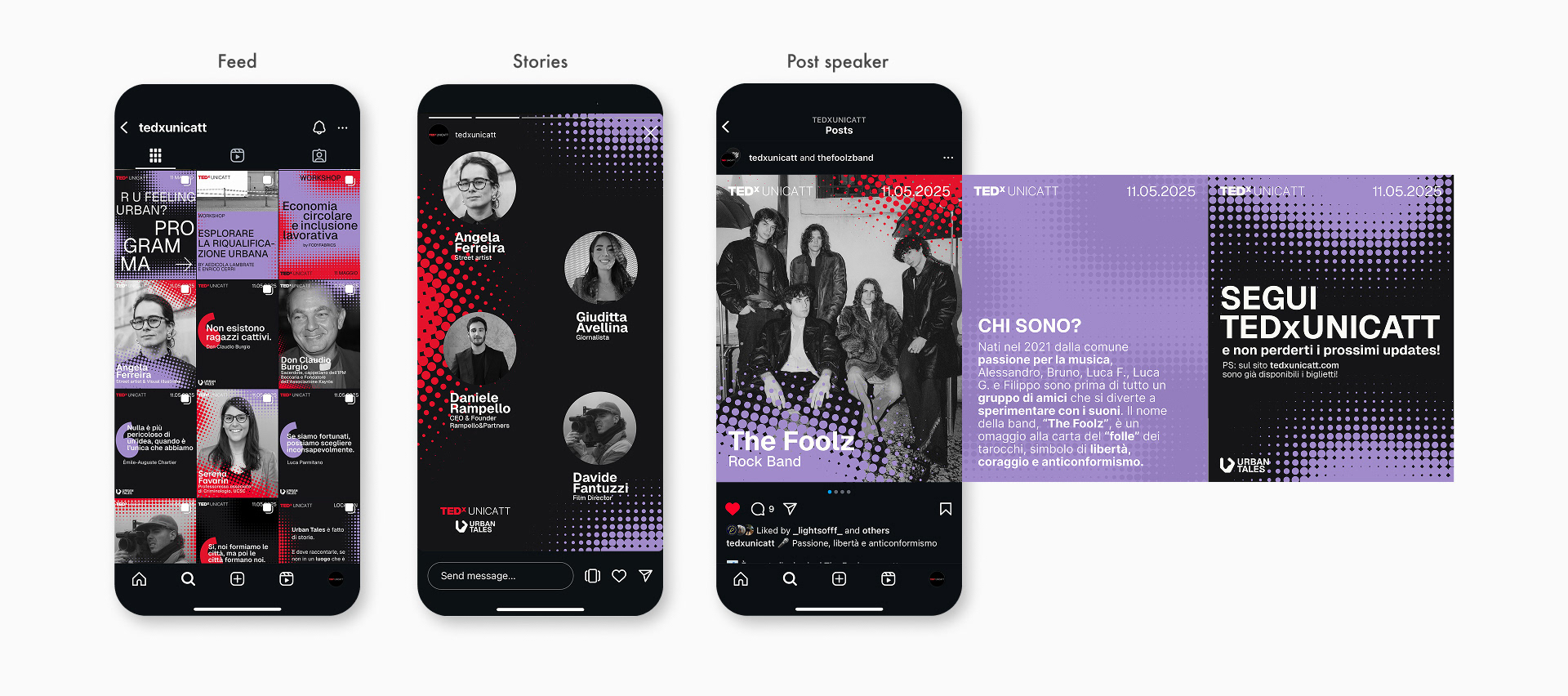 TEDxUNICATT is the official TEDx event of Università Cattolica del Sacro Cuore and brings together around 80 members collaborating across multiple teams. As part of the marketing & creative team, the work focused on conceiving and designing the visual identity for the association’s events throughout the year. Two major events were produced during the year, each requiring tailored creative direction while maintaining a coherent and recognizable association identity presence. The projects involved visual identity design, content creation for social media, and the development of all communication materials across digital and physical touchpoints.